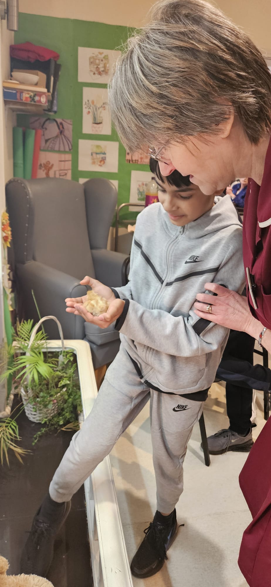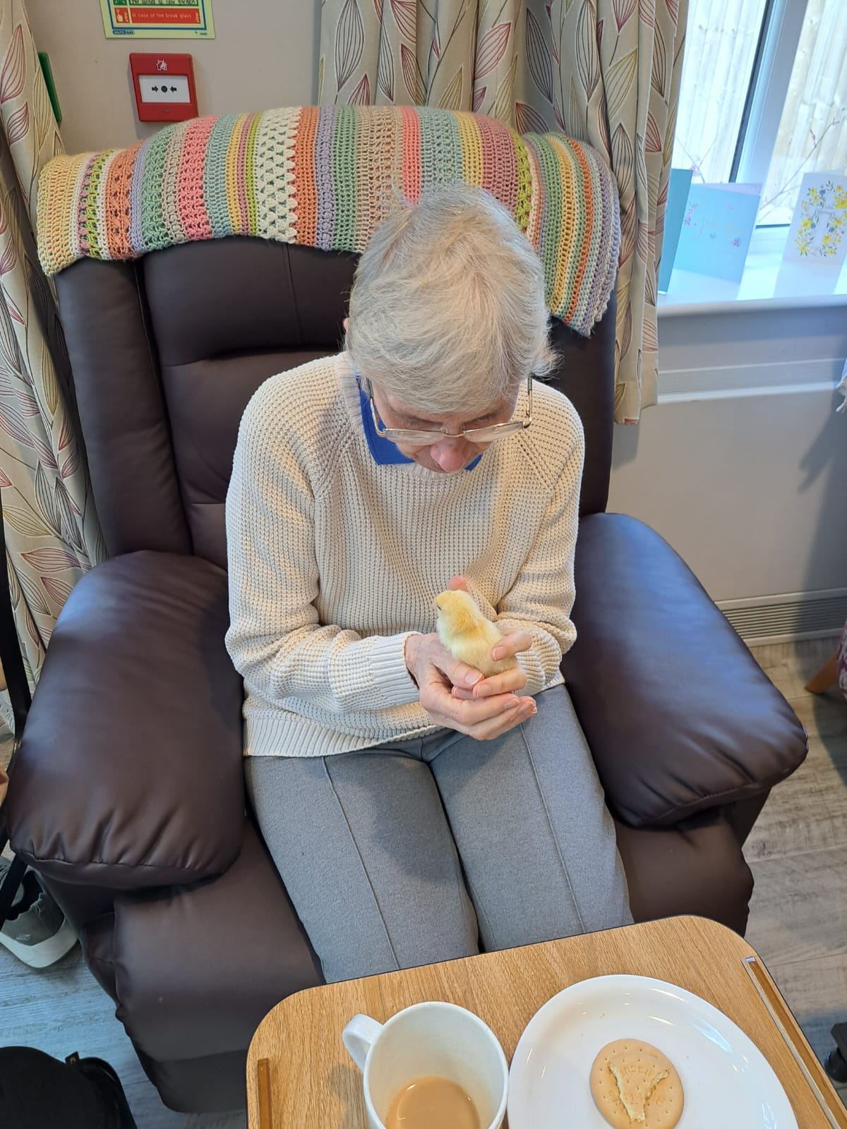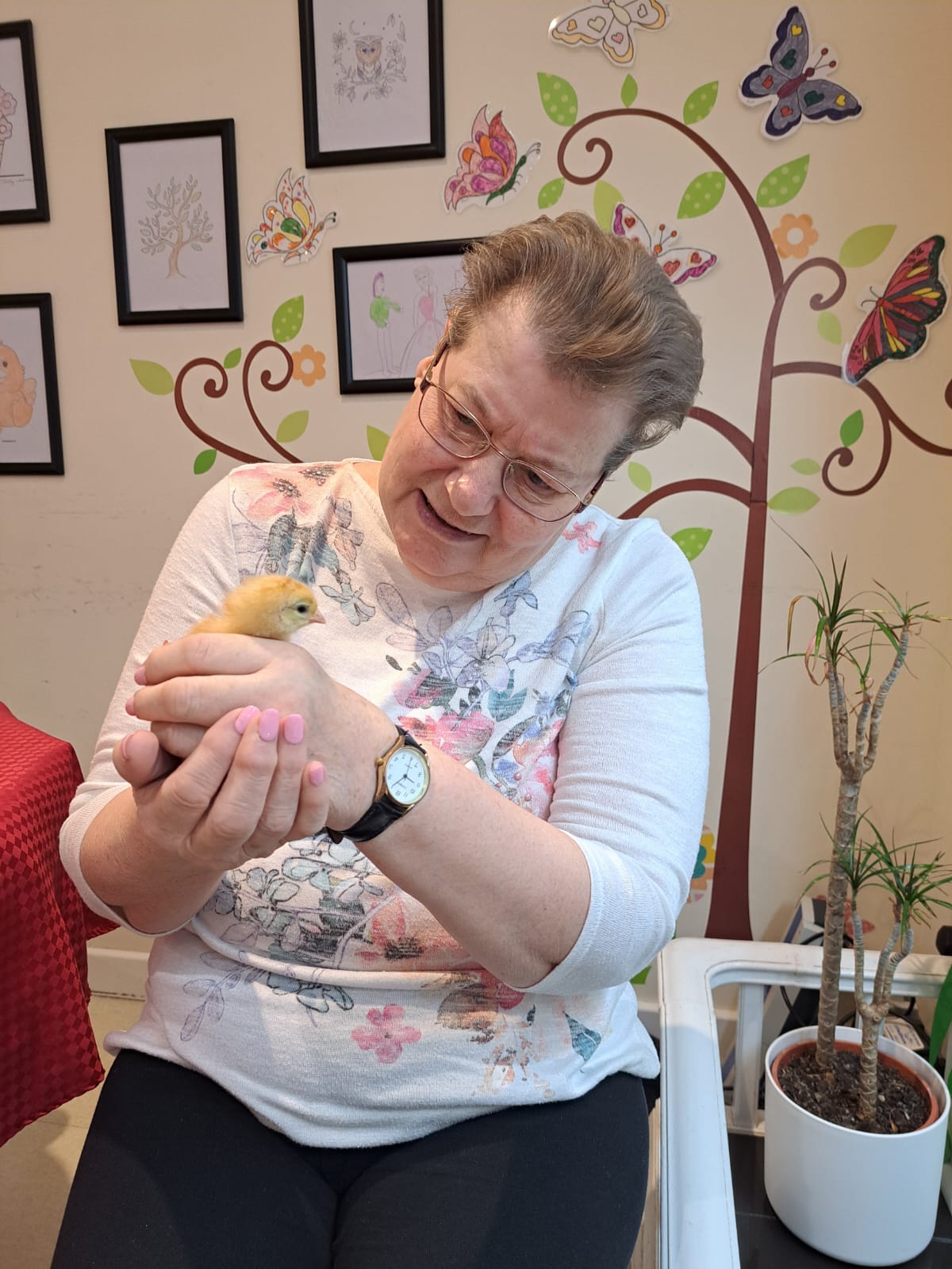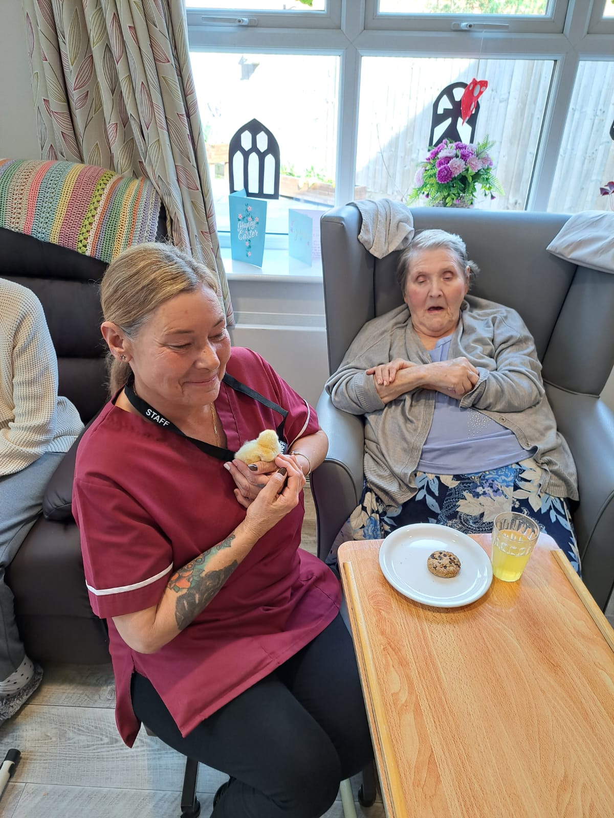 We also had the pleasure of seeing baby chicks that we saw hatch and grow into bundles of fluff. On Easter Sunday all the residents who wished to were able to hold them and this was loved by all.